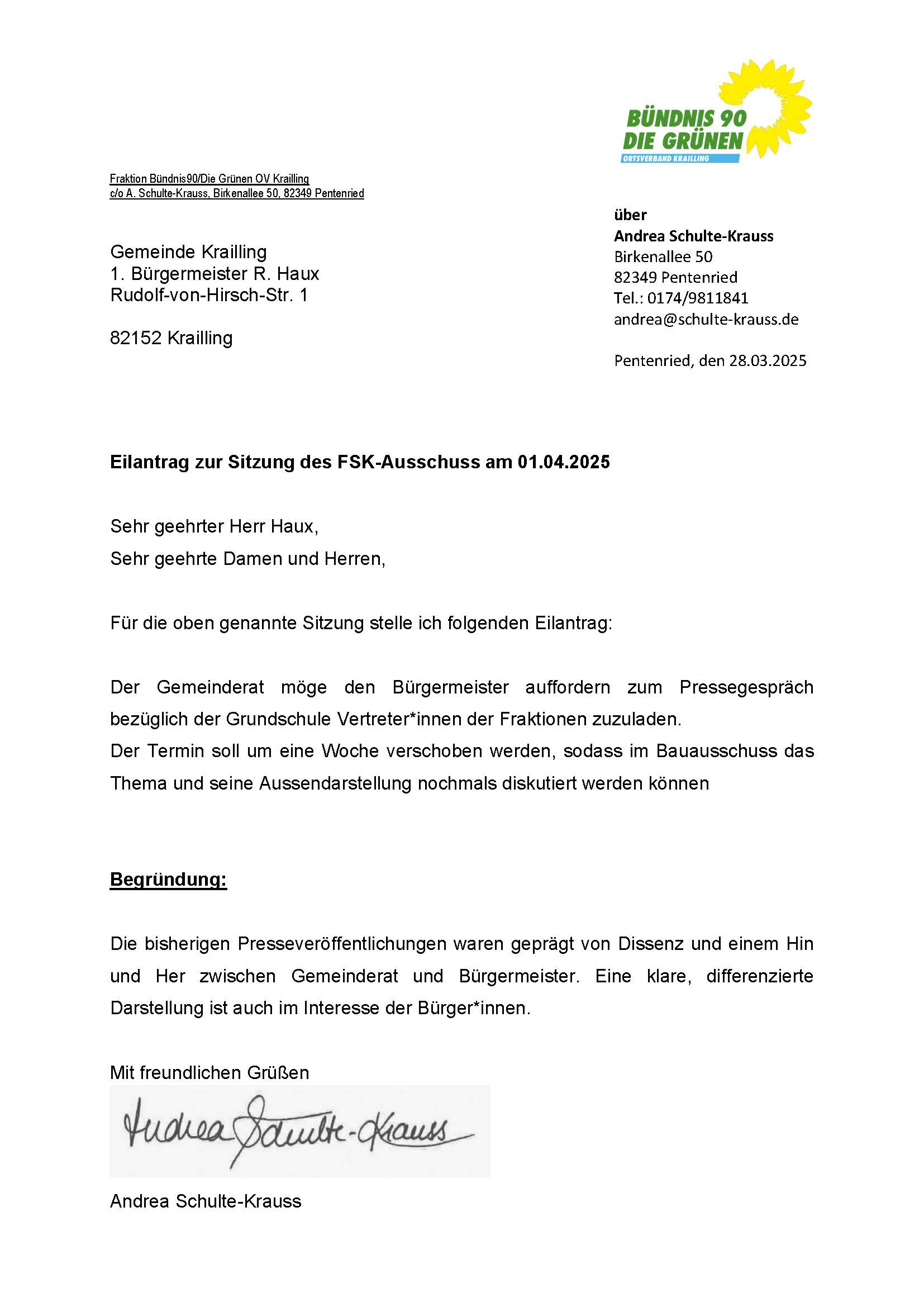 Intransparenz und der Hang, Meinung als Wahrheit darzustellen zwingt uns im Gemeinderat immer wieder dazu, Sondersitzungen zu beantragen. Der Bürgermeister sollte nicht seine Repräsentationsaufgabe mir Selbstdarstellung verwechseln. Denn, wen soll er denn repräsentieren? In erster Linie die gewählten Vertreter*innen des Gemeinderats. Und Gemeinderatsbeschlüsse sind laut Bayrischer Gemeindeordnung vom Bürgermeister umzusetzen und nicht zu ignorieren oder gar zu diffamieren.